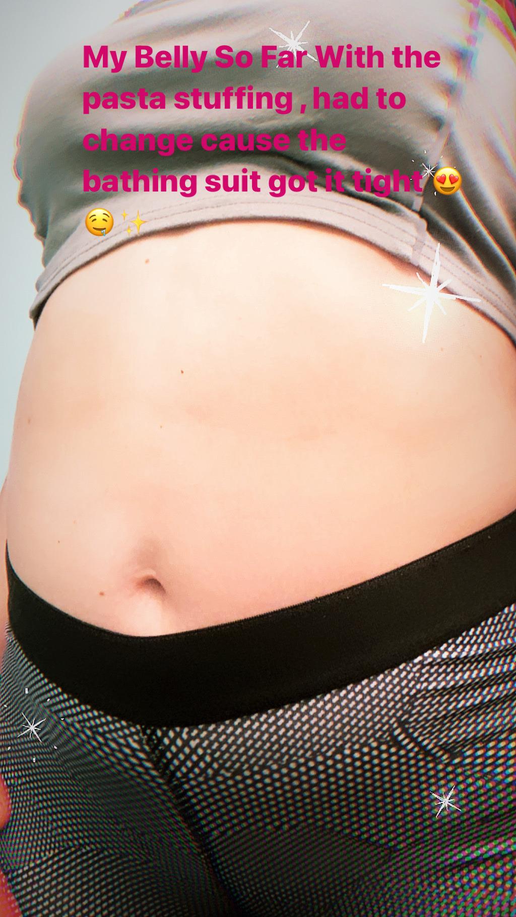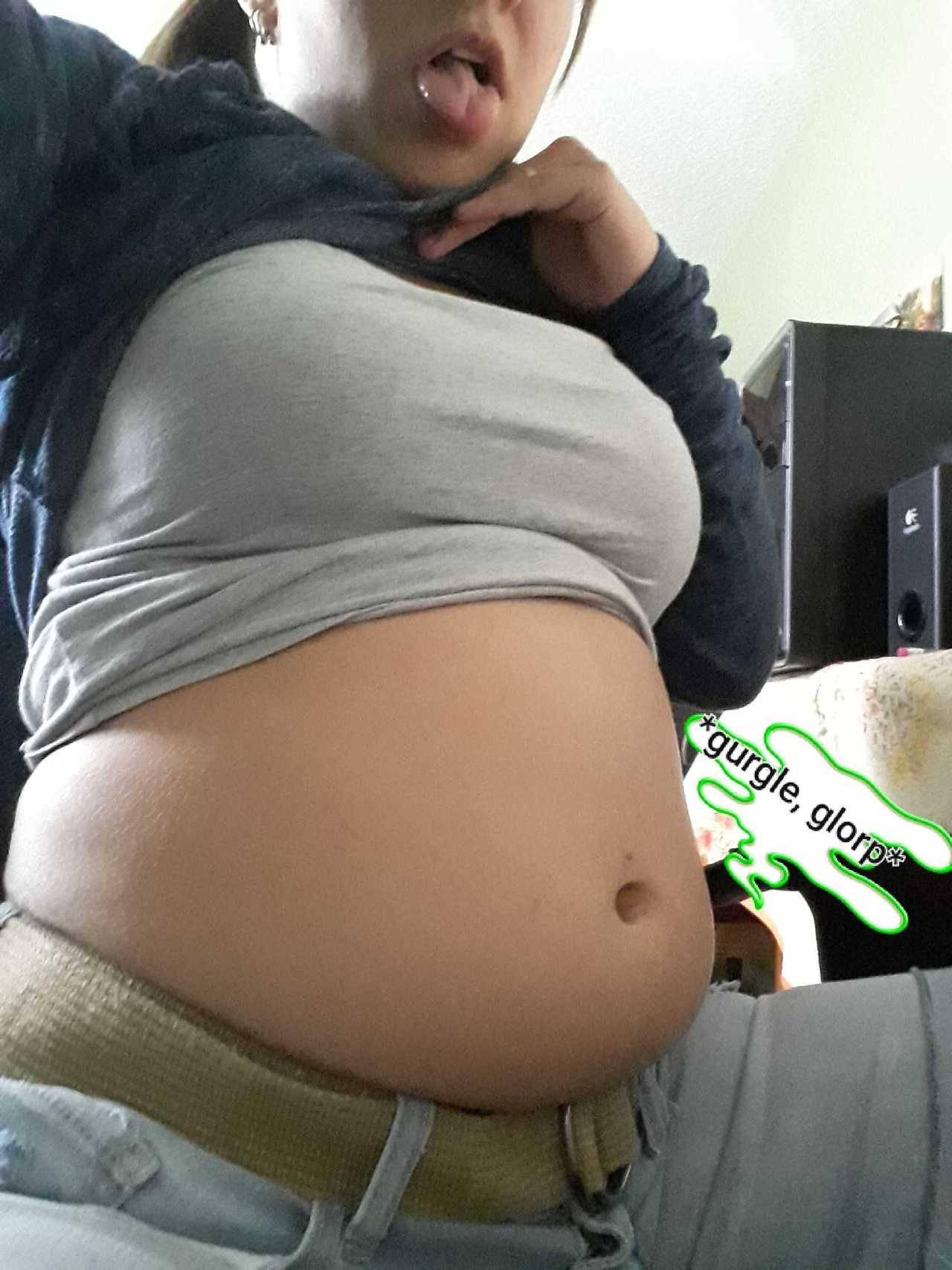 Sexy girl stuffed belly
